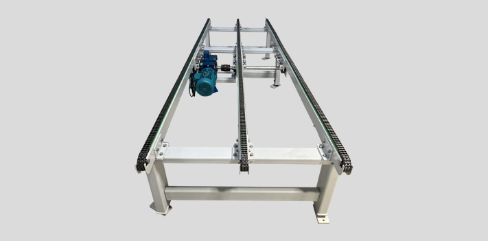 A pallet chain conveyor is an industrial material handling system designed to transport palletized goods efficiently and reliably over long distances. This robust conveyor utilizes a continuous chain mechanism to move pallets smoothly from one point to another, ensuring a consistent and controlled flow of materials throughout the facility.
